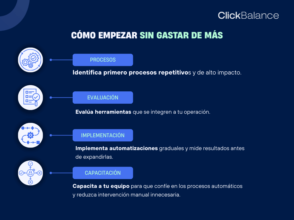 La automatización de procesos no requiere inversiones gigantes ni complicaciones técnicas. Aplicando pequeñas acciones este trimestre, tu empresa puede: